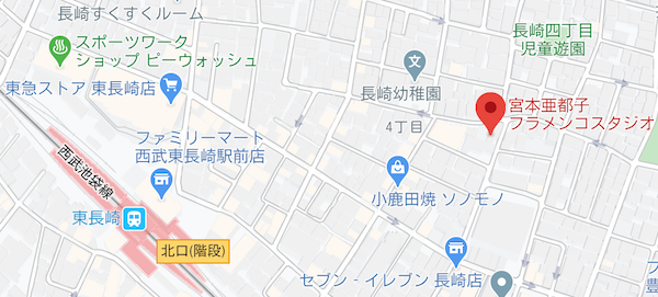 周辺地図 岡ピアノ教室171-0051 東京都豊島区長崎4-24-7TEL.03-3957-3459 090-2404-9454 アクセス 西武池袋線東長崎駅北口の階段を下りたら駅前の薬局を右手に見ながら直進し、突き当たりを右折。別の薬局の角を左に入った右側。幼稚園のはす向かい。 西武池袋線 「東長崎」より徒歩4分大江戸線 「落合南長崎」より徒歩10分地下鉄有楽町線 「千川」より徒歩13分